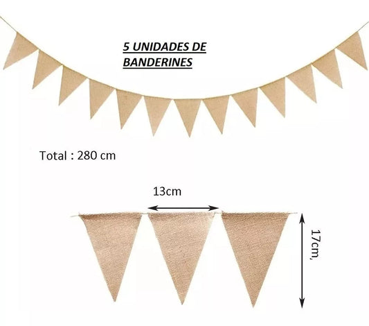 Banderines Guirnalda Arpillera Vintage Fiestas Hogar 2.8m 5u