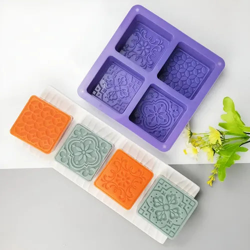 Molde De Silicona Para Jabones Cuadrados Con Diseños Varios