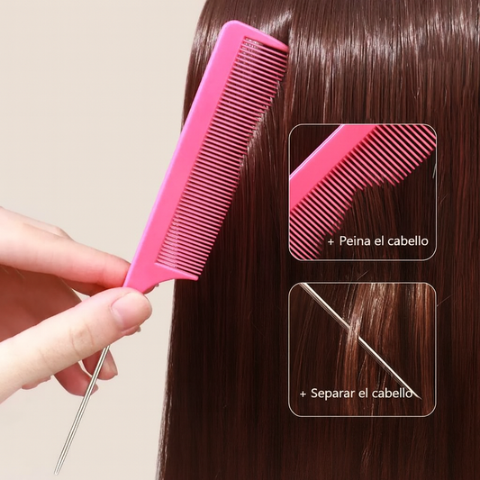 Peine Con Mango De Metal Separador De Cabello Peluqueria