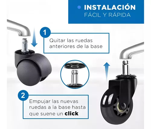 Pack De 5 Ruedas Repuesto Silla Escritorio Giratoria Silicon