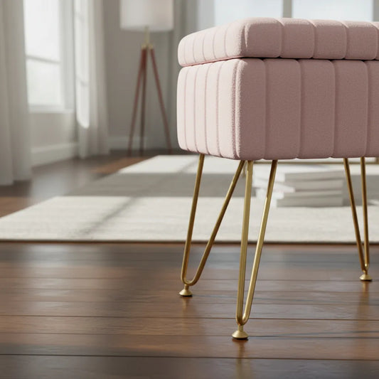 Taburete De Terciopelo Con Cajon Patas Metal De Calidad ROSADO