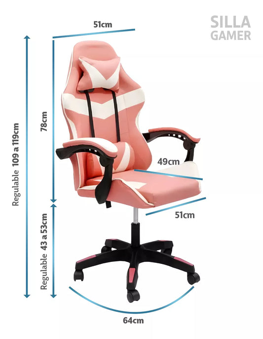 Silla Gamer Pro Giratoria Para Pc Gaming Fuerte Ergonomica ROSADA