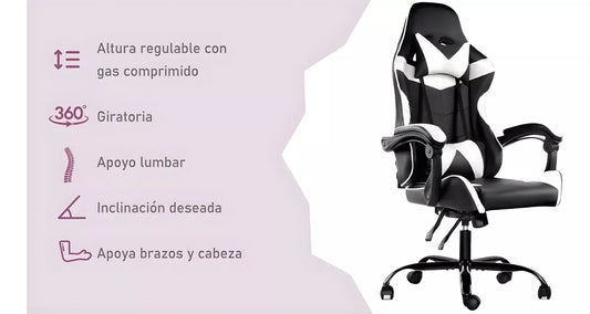 Silla Gamer Pro Giratoria Para Pc Gaming Fuerte Ergonomica negra y blanca