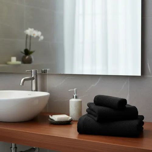 Toalla negra 100% algodon gruesa 150gr 35x75cm mano cara FEDE ADELANTE 016