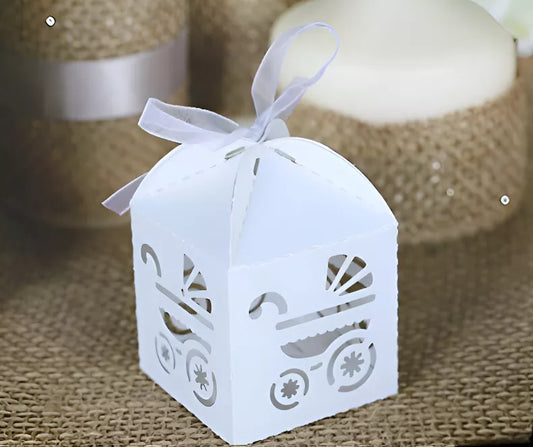 Caja Craquelada "Coche Bebe" con cinta incluida x10un 5cmx5cmx7cm
