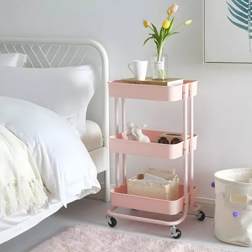 Carrito Frutero 3 Niveles Estilo Italiano Multiuso Hoga Rosado