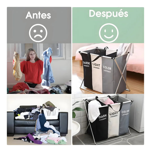 Cesto Para Ropa Con Separacion Por Color En Tela Lavable hc25109