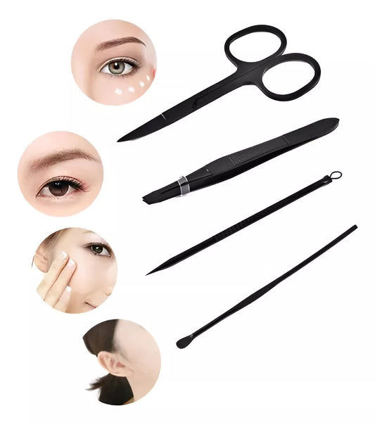 Kit De Pinzas De Ceja 4 En 1 Calidad Premium Agarre Perfecto
