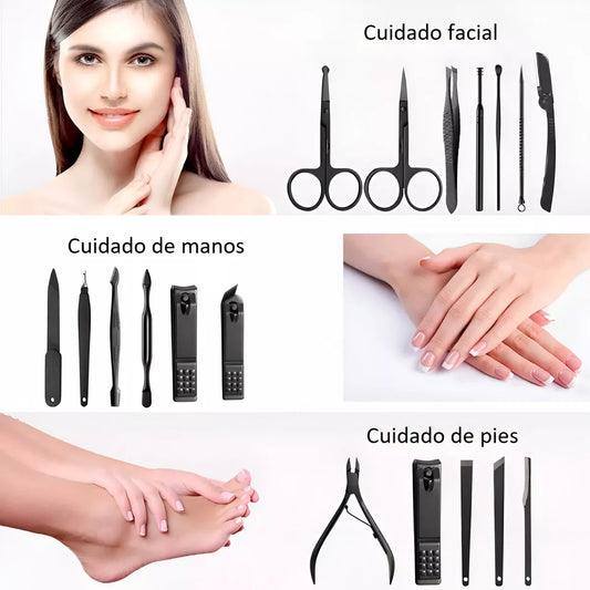 Juego De Corta Uñas Uñas Negro Y Rojo 20pz Tijera Pedicura