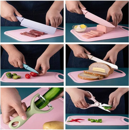 Juego Set Kit De Cuchillos Y Tabla Cocina