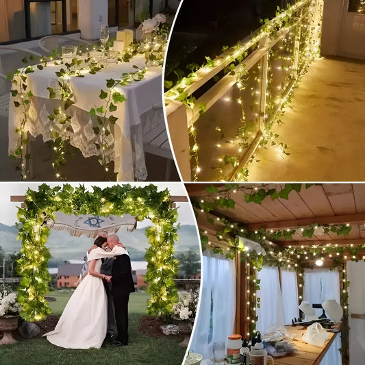Guirnalda Enredadera Hojas Verde Artificial Pila Luz Led 2m