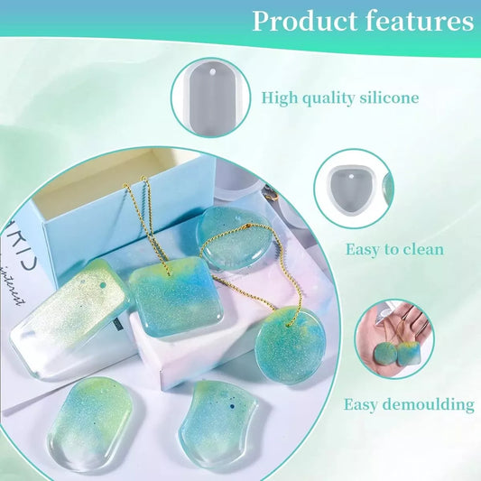 Kit 6 Moldes De Silicona Collares Llaveros Para Resina Epoxi R-063