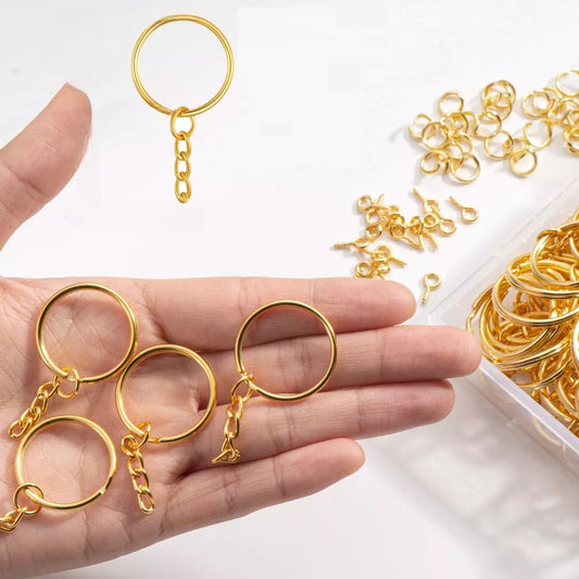 Llaveros Dorados Aro Con Cadena Manualidades 50 Unidades
