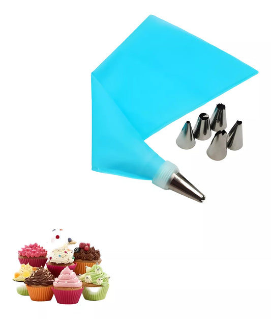 Manga De Repostería Con 6 Punteros Picos + Acople Acero Inox
