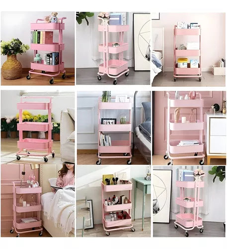 Carrito Frutero 3 Niveles Estilo Italiano Multiuso Hoga Rosado