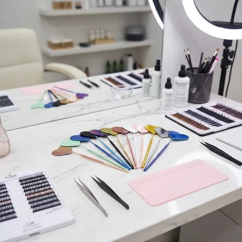 💖 Espejo con Forma de Corazón – Extensiones de Pestañas 💖