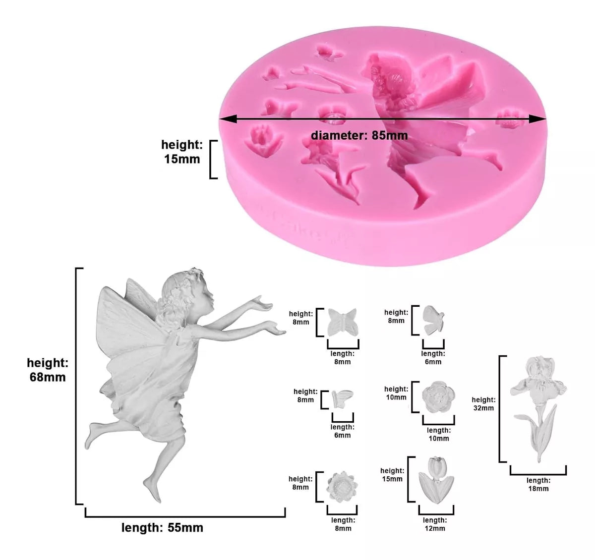 Molde De Hada Y Flores Angel Con Flores Decoración De Pastel