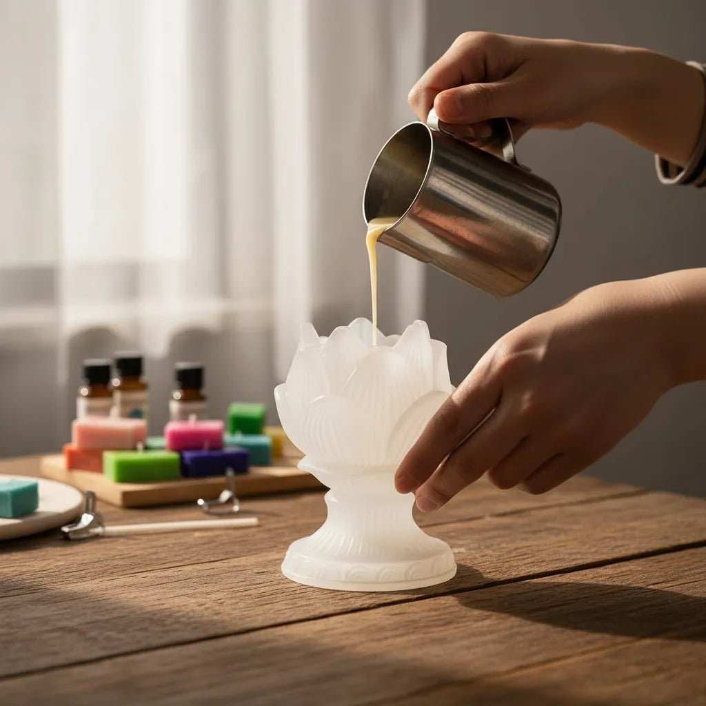 Molde de Silicona Flor de Loto 🌸 con Pie – Para Macetas, Candelabros o Resina Epoxi ✨