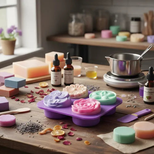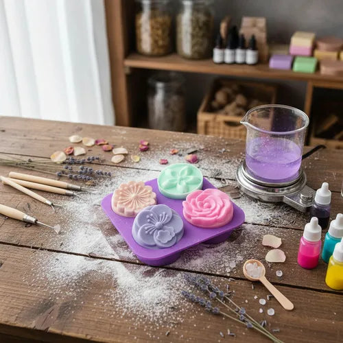 Creá velas o jabones artesanales con un toque delicado y floral 🌺. Este molde de 4 flores es perfecto para manualidades, regalos 🎁 o decoración creativa de tu hogar 🏡. Ideal para velas de cera de soja 🕯️ o jabones hechos a mano 🧼.