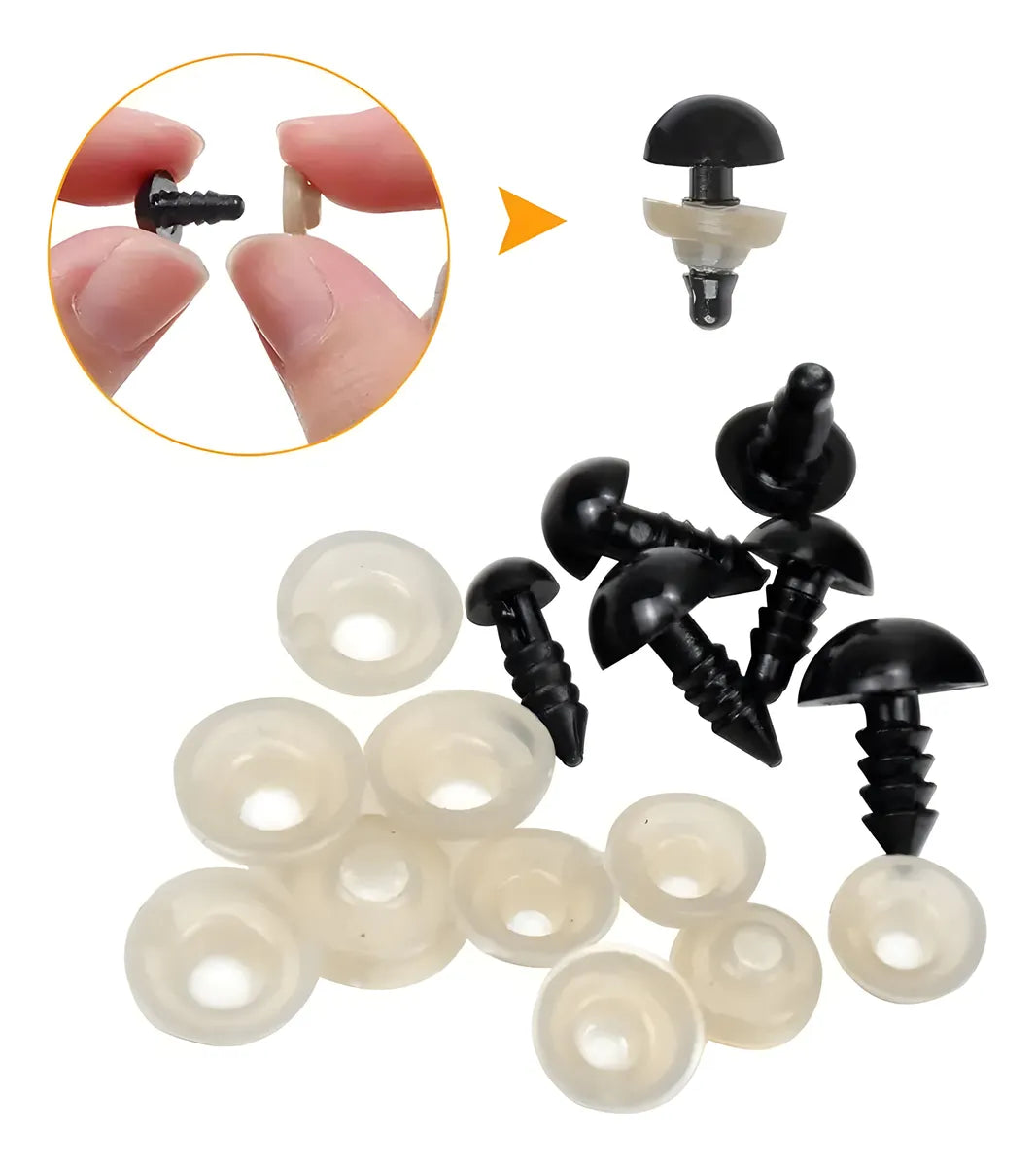 Agregale vida y expresión a tus amigurumis y muñecos tejidos con estos ojos plásticos de 12 mm. Tienen un brillo hermoso y vienen con trabas de seguridad para que queden bien firmes, ideales para piezas que buscás que duren y se vean siempre prolijas.