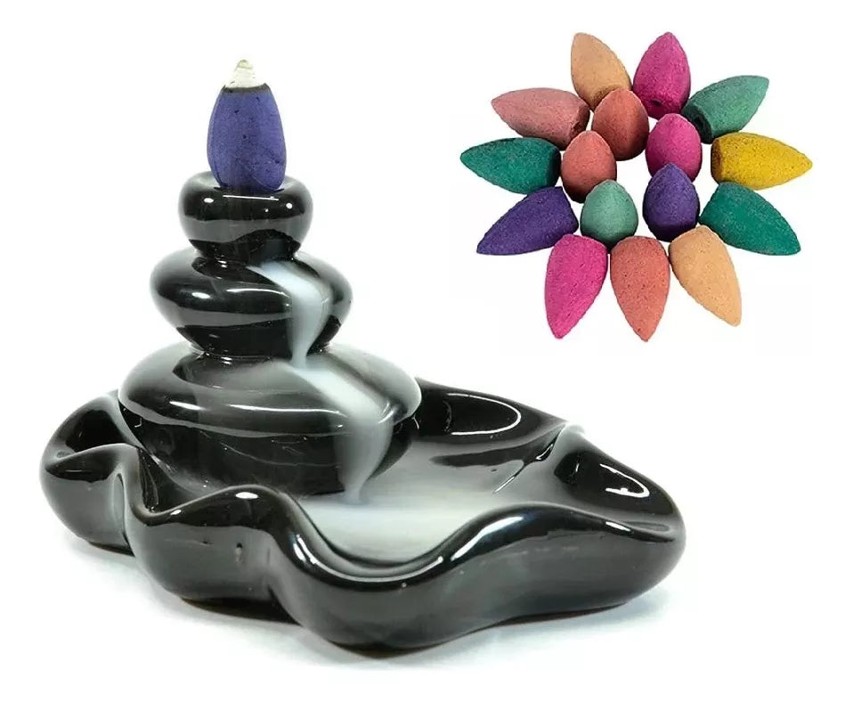 Quemador Incienso Cascada + 48 Conos Incienso Backflow