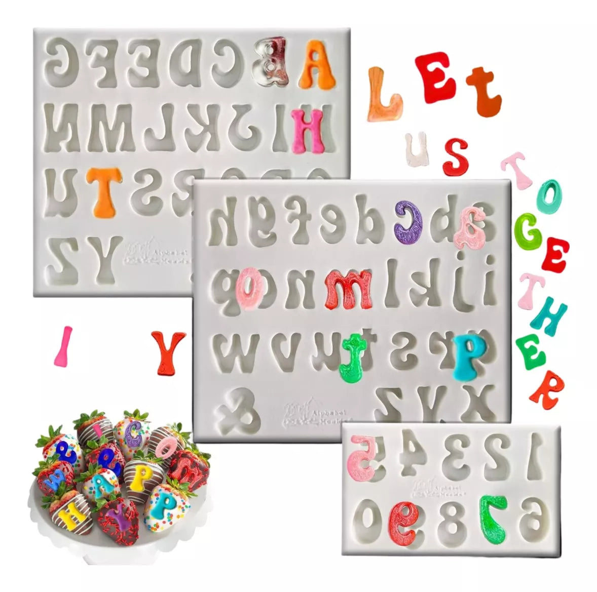 Set 3 Moldes Silicona Letras Y Numeros Antiadherente