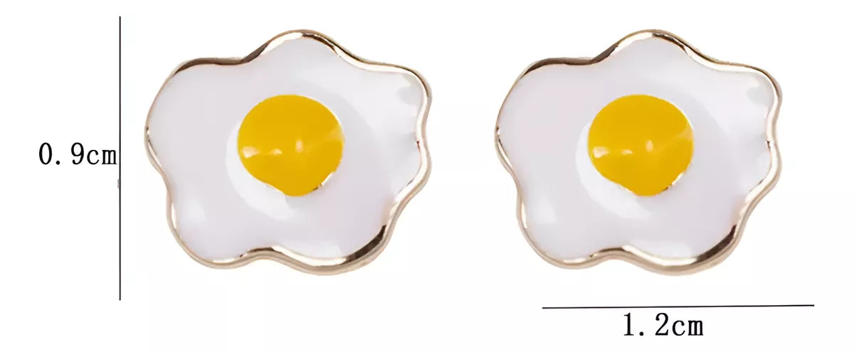 Set X2 Caravanas Con Forma Huevo Frito Aleación Plata