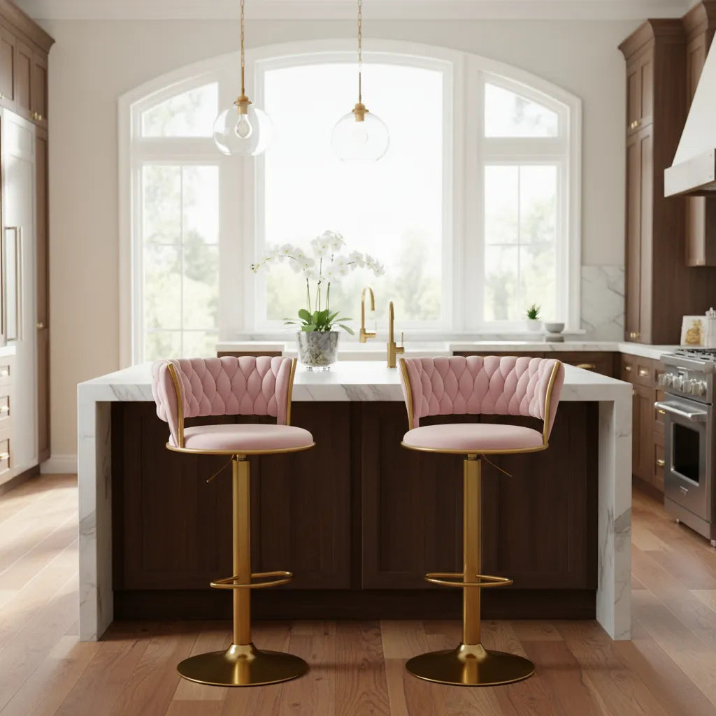 Silla Butaca De Tela Moderna De Metal Con Ajuste De Altura Rosa o Blanco